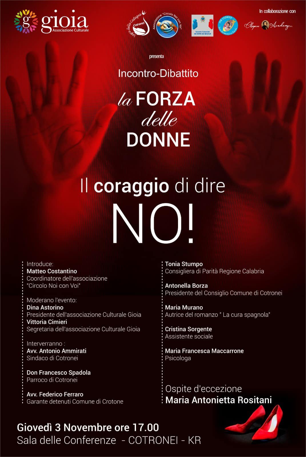 La Chopin Academy APS ha preso parte all’incontro–dibattito “La forza delle donne – Il coraggio di dire NO”, un’importante iniziativa di sensibilizzazione dedicata al contrasto della violenza sulle donne e alla promozione di una cultura del rispetto, della consapevolezza e della dignità.